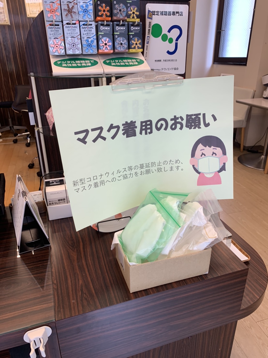 2020 年 4 月 22 日公開 飛沫感染予防シート取り付け # #飛沫感染保護 #店内衛星管理 #補聴器 店内に飛沫感染予防シートを取り付けました。お連れさまやマスクがない方へ無料の簡易的マスクをご用意しました。