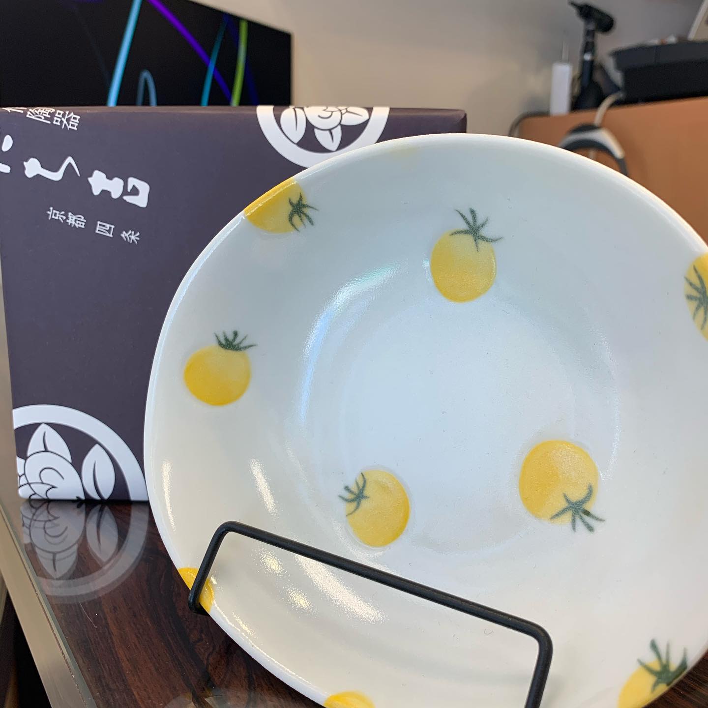 可愛いらしいミニトマトの挿絵の丸皿です。
